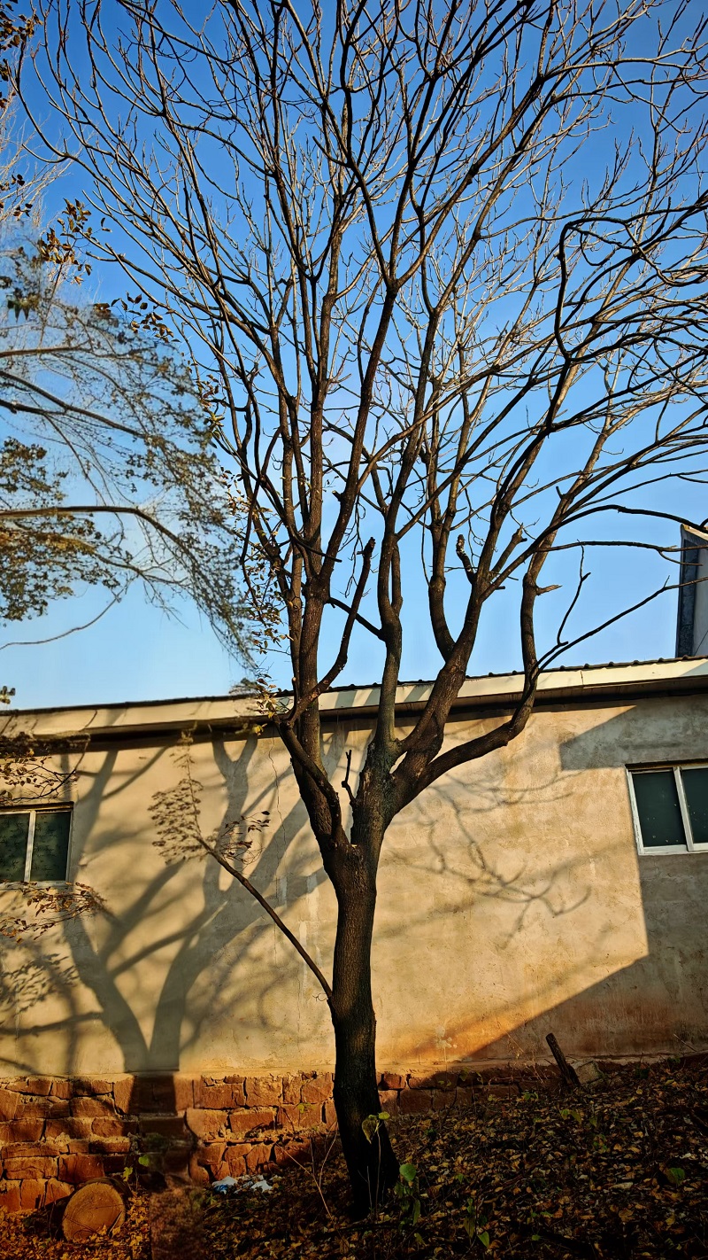 后来农村习俗变迁,打婚床不再用臭椿木,这树便在老家渐次消失。如今庭院内外尽是奇花异草,田间地头也多是速生杨这类能换钱的树。唏嘘之余,接管马陵九道湾水厂时才发现,山间虽多见小苗,却难寻大树。或许是被山民随意砍伐,又或是贫瘠的山土未容它们长成栋梁。