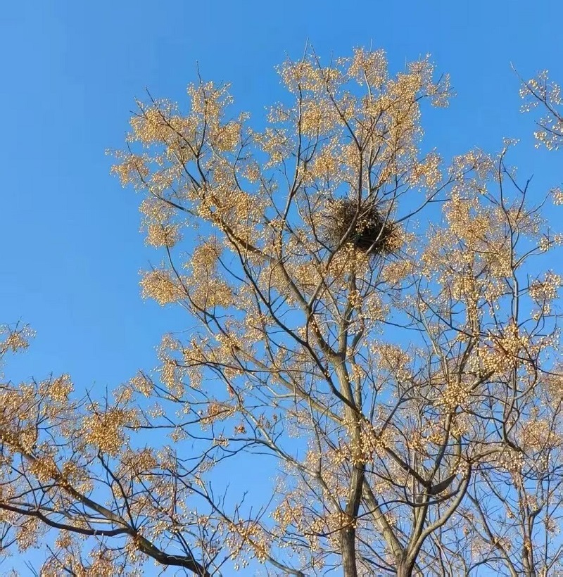 愿我们皆能似苦楝树般——春日绽放紫霞,如云似雾漫山岗;夏日枝叶舒展,绿荫如伞蔽骄阳;秋日金果缀枝,若星斗缀寒枝上;冬日枝干傲立,似星河凝待春光。在四季流转中坚守本心,在岁月沉淀中愈发芬芳。