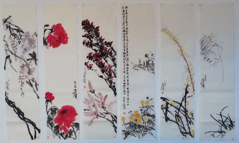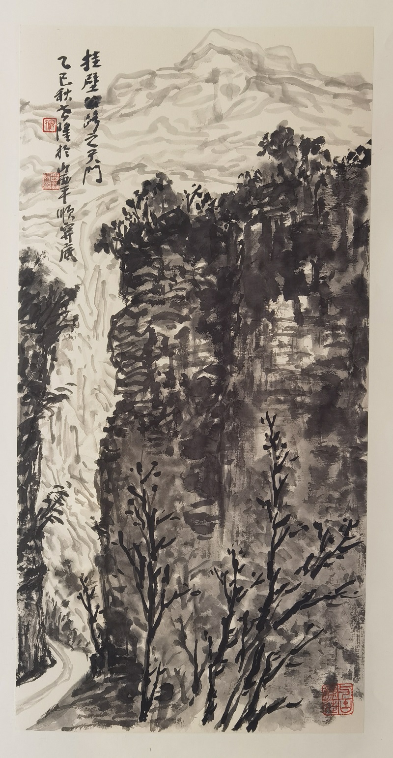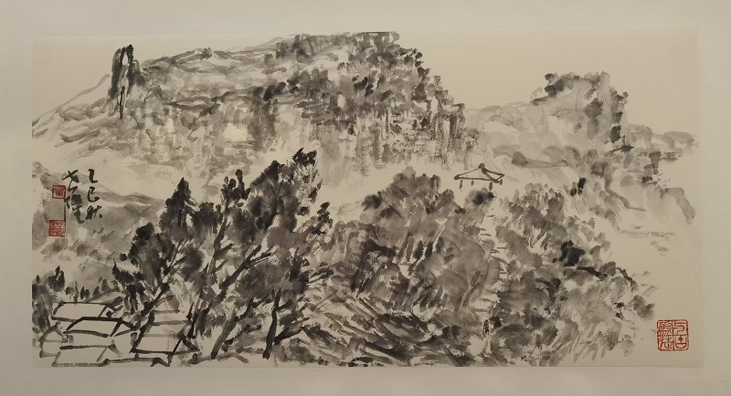 然而真正令我惊叹的,是他去年随知名画家张锁诚先生赴甘肃天祝、山西太行的两次写生之旅。昔日他骑行千里,看的是流动的风景;如今他驻足太行,画的却是沉淀的岁月。那些山峦、溪涧、村舍,经他笔墨点染,既得传统山水之骨,又添生活烟火之魂。我常笑说他应该为子孙后代留一万张画,他却笑而不答——原来他早已将骑行所见的天地广袤,都化作了案头山水间的气韵生动。