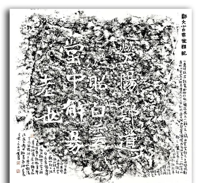 最喜这一纸拓本。郑文公白云堂的风霜,凝在斑驳石面,隶意楷书,蚀而不朽。“荧阳郑道昭,白云堂中解易老也”——十三字金石掷地,千年余响不绝。仿佛道昭公仍在松间对坐,指点玄理,微风穿过碑林而又至案头。