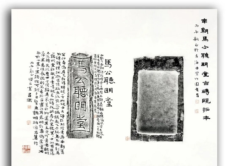 案头这方南朝“马公听明堂”古砖砚拓本,马家德勇兄藏,丽君女士拓制。