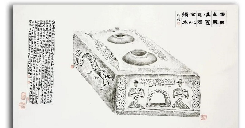陶灶拓本尤见人间意趣。鱼纹绕灶,庖人执器,火门微张,似正吞吐着汉家的炊烟。那些刻在泥胎上的鱼,犹在汤水中摇头摆尾;持炊者的衣褶里,藏着对丰足最朴素的盼望。先民以陶为纸,以刀为笔,把寻常日子的期望,一笔笔刻进纹路里,不曾想,千载后仍有余温。