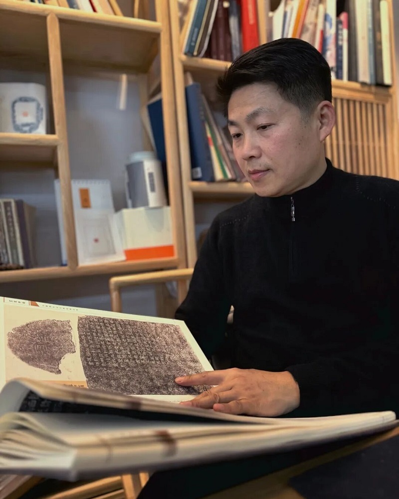 闲暇时将拓本故事徐徐道来:从荥阳山间,到案前墨本;从道昭公解易,到拓工俯身。墨香与金石交融,山风穿纸而来,北朝人身影便从字缝中走来。