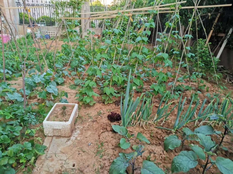 翻地是最初的仪式。铁锹切开板结的土块,晒透的泥土散发出沉睡一冬的、朴素的腥气。为了增加肥力,我从农民家里买了两车已经沤好的土杂肥,均匀地撒在田里,接着是深挖、耙平,把地整理得松软如糕。然后,或撒下一把细小的种子,或栽下几行嫩绿的秧苗。浇水必在傍晚,看水缓缓地、深深地渗下去,仿佛能听见根须畅快的喘息。我尽量不打药,宁肯多费工夫亲手捉虫。于是,春天埋下薯块,夏天就能挖出累累果实;夏日点下豆种,秋风里便垂下一架饱满。一年年,时光就在这播种与收获的轮回里,踏实而丰盈地流过。